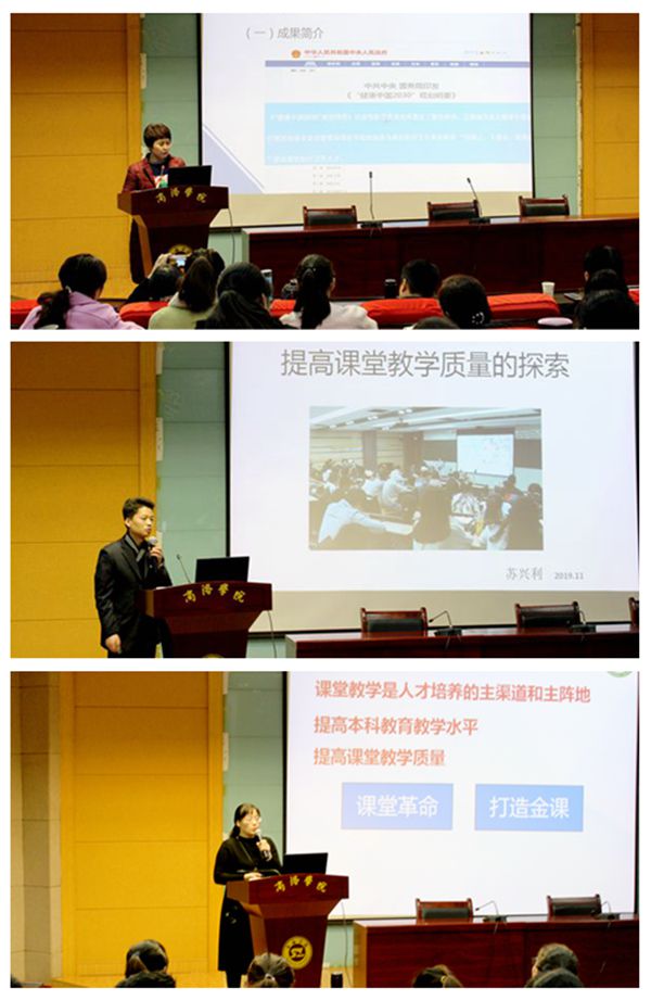 報(bào)告會(huì)上,和新盈作了題為《基于OBE教育理念,面向基層卓越醫(yī)生培養(yǎng)的形態(tài)實(shí)驗(yàn)教學(xué)新體系構(gòu)建與實(shí)踐》的報(bào)告,從宏觀角度向大家展示了如何選題、組織、申報(bào)教學(xué)成果獎(jiǎng);蘇興利作了題為《提高課堂教學(xué)質(zhì)量的探索》的報(bào)告,他結(jié)合自己的切身體會(huì),與大家分享了如何做一名好老師,如何上好一堂課;鄭慧媛以《對(duì)分課堂在胚胎學(xué)教學(xué)中的應(yīng)用與探索》為題,向大家講解了陜西省第一屆課堂教學(xué)改革創(chuàng)新大賽的比賽形式、參賽準(zhǔn)備,并為大家進(jìn)行了現(xiàn)場(chǎng)示范教學(xué)。三位專家的報(bào)告精彩紛呈、形式多樣,與會(huì)教師紛紛表示,本次報(bào)告會(huì)啟發(fā)了思路,開(kāi)拓了視野,今后將努力汲取專家報(bào)告的精華為我所用,不斷提高課堂教學(xué)水平。