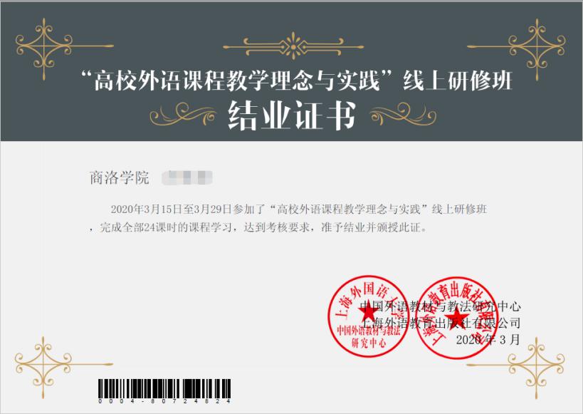——教學(xué)水平穩(wěn)步提升。提升教學(xué)基本功是教研室活動的主要內(nèi)容。為了最大限度降低疫情對教研活動的影響,人文學(xué)院組織教師參加了測試與外語教學(xué)、金課建設(shè)、課堂教學(xué)設(shè)計、智慧教學(xué)、線上線下混合式教學(xué)、教學(xué)示范等6個方面18場在線直播講座。到目前為止,已有16名教師獲得線上研修班結(jié)業(yè)證書。