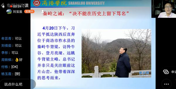 整堂思政課持續(xù)了近兩個(gè)小時(shí),師生反響熱烈,評(píng)論區(qū)里各種點(diǎn)贊、學(xué)習(xí)、加油此起彼伏?!袄蠋熤v的真好!”“點(diǎn)贊校長(zhǎng)”“向習(xí)大大學(xué)習(xí)”“成長(zhǎng)于大秦嶺腳下的我太驕傲了”“追趕超越也有我”“小木耳大產(chǎn)業(yè),習(xí)近平總書記太暖心”“‘西遷精神’最令我印象深刻?!薄辈ラg的彈幕不停地在滾動(dòng),校領(lǐng)導(dǎo)們深刻又生動(dòng)的講解不斷吸引新的師生加入收看,開(kāi)播一小時(shí)后,師生點(diǎn)贊數(shù)已過(guò)5萬(wàn)。還有同學(xué)留言說(shuō),家人朋友也與自己一同收看了這堂生動(dòng)的“網(wǎng)絡(luò)思政課”。