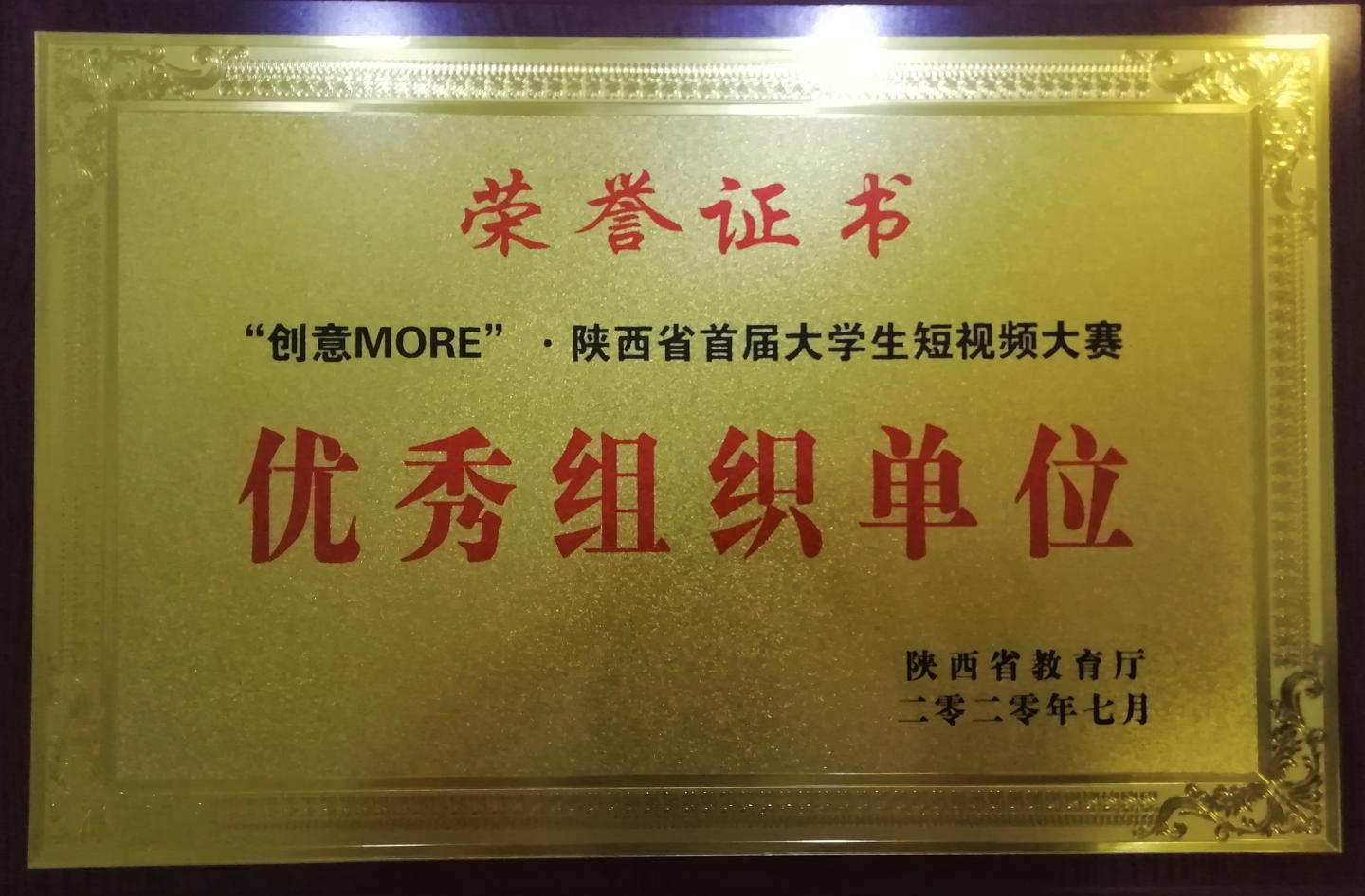 我校榮獲陜西省首屆大學生短視頻大賽優(yōu)秀組織單位獎