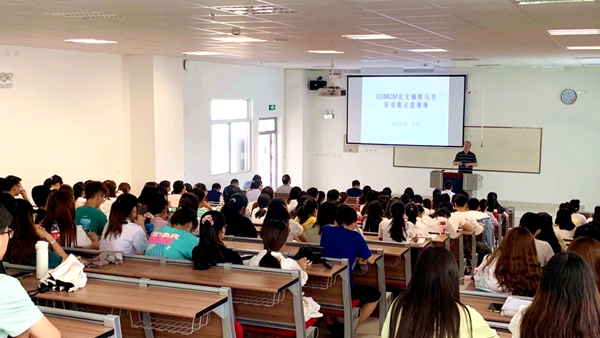 張博副教授現(xiàn)任全國大學(xué)生數(shù)學(xué)建模競賽陜西賽區(qū)組委會副秘書長兼辦公室主任,他以《數(shù)學(xué)建模論文摘要寫作和競賽注意事項》為題作數(shù)學(xué)建模專題報告。我校參加2020年全國大學(xué)生數(shù)學(xué)建模競賽的學(xué)生和指導(dǎo)教師聆聽了張教授的精彩報告。報告借助建模摘要典型案例分析,詳解了建模競賽論文摘要的寫作方法,介紹了競賽期間建模論文的提交、相似度檢測以及競賽紀律等注意事項,鼓勵師生堅定信心、積極備賽。