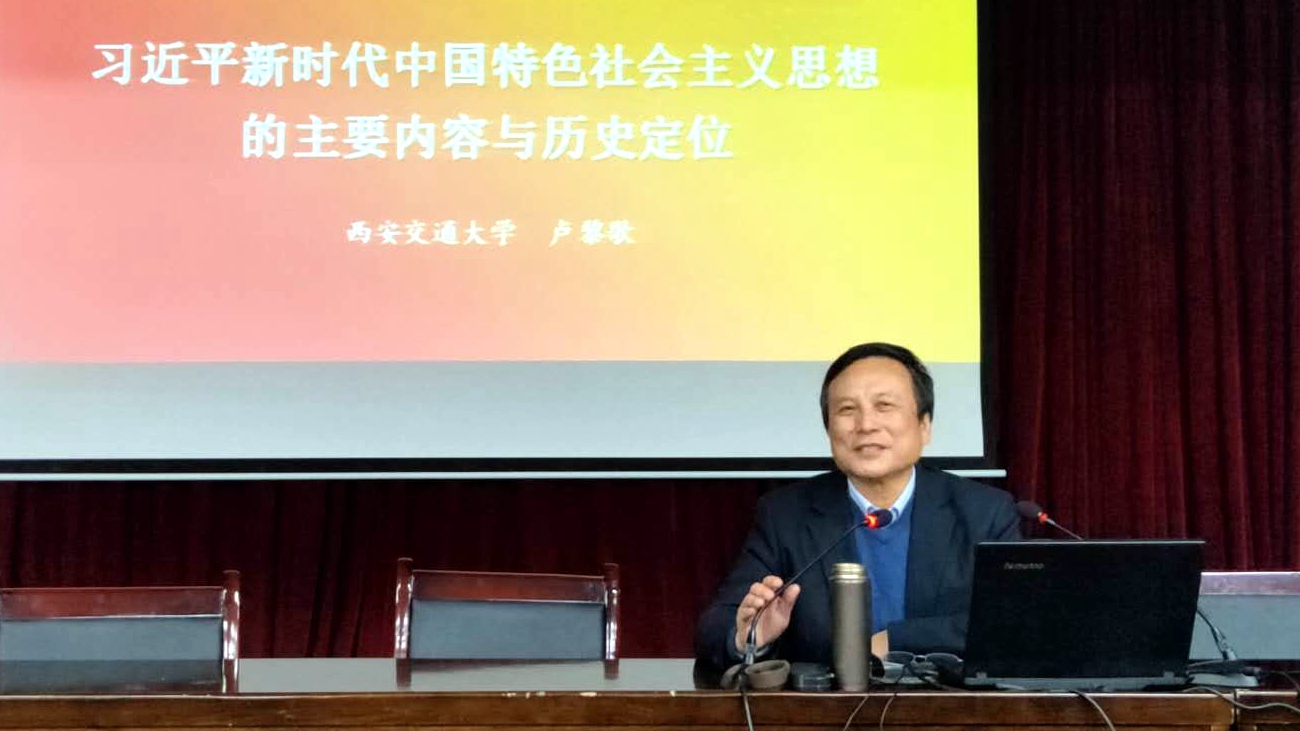 10月18日晚,西安交通大學(xué)馬克思主義學(xué)院博士生導(dǎo)師、陜西省教學(xué)名師、國(guó)務(wù)院政府特殊津貼專(zhuān)家盧黎歌教授,以“習(xí)近平新時(shí)代中國(guó)特色社會(huì)主義思想的歷史地位和主要內(nèi)容”為題為我校馬克思主義學(xué)院全體師生作學(xué)術(shù)報(bào)告。