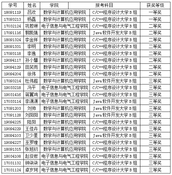 第十一屆藍(lán)橋杯大賽省賽我校獲獎(jiǎng)學(xué)生名單