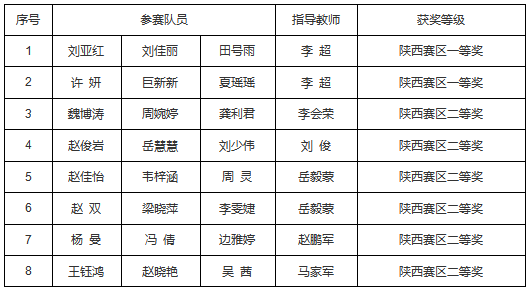 2020年全國大學(xué)生數(shù)學(xué)建模競賽結(jié)果揭曉。我校參賽隊(duì)共獲得陜西省賽區(qū)一等獎(jiǎng)2項(xiàng)、二等獎(jiǎng)6項(xiàng),系我校歷年來獲獎(jiǎng)等級最高、獎(jiǎng)項(xiàng)最多的一次,實(shí)現(xiàn)了新的突破。