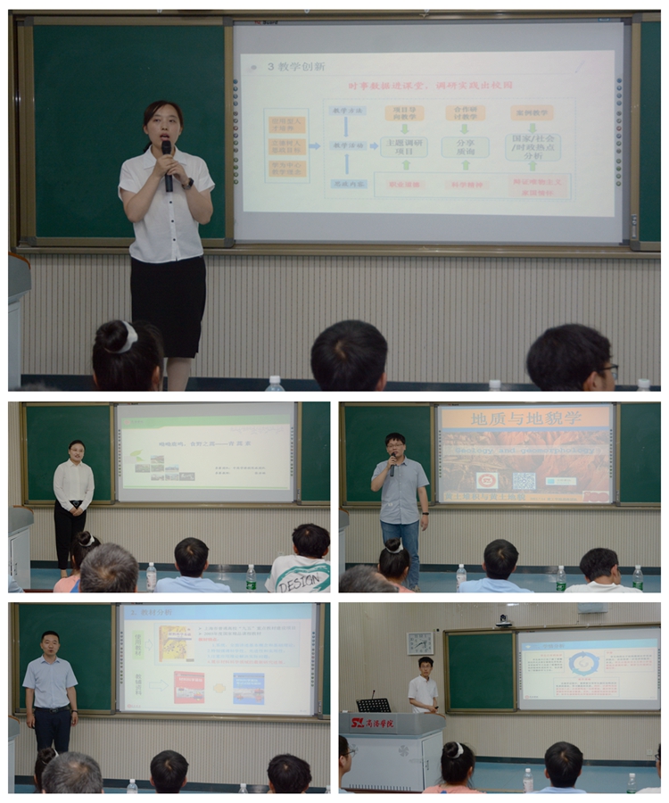 現(xiàn)場展示采取參賽教師5分鐘說課和15分鐘講課的方式進行。5名參賽教師精心備賽、準備充分,以PPT課件、板書等傳統(tǒng)教學方式為基礎,深入挖掘各自課程蘊含的思政教育元素和所承載的思政教育功能,充分展示了各自的“課程思政”理論功底和教學風采。