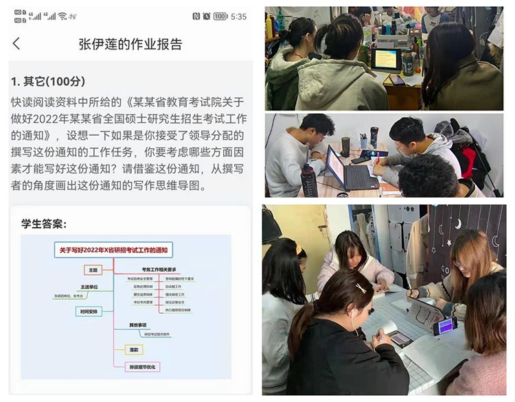 回顧一周線上教學,疫情防控給教育教學工作帶來的不確定性得到了充分應對。全體教師精神狀態(tài)飽滿,活學活用信息化技術(shù)和各種教學輔助手段,充分發(fā)揮線上教學數(shù)據(jù)優(yōu)勢,比學趕超,線上教學效果良好。數(shù)計學院教師程國表示,雖然不能與同學們面對面,但豐富的線上互動讓師生的心貼得更近,實時更新的學習數(shù)據(jù)也促使學生更加努力地投入學習。人文學院學生張伊蓮表示,老師在線上教學中要求以思維導圖的形式提交作業(yè),形式新穎,對思維敏捷度和全局信息掌握能力都是很大的考驗,這樣的作業(yè)有挑戰(zhàn)度,也有利于提升專業(yè)核心能力。