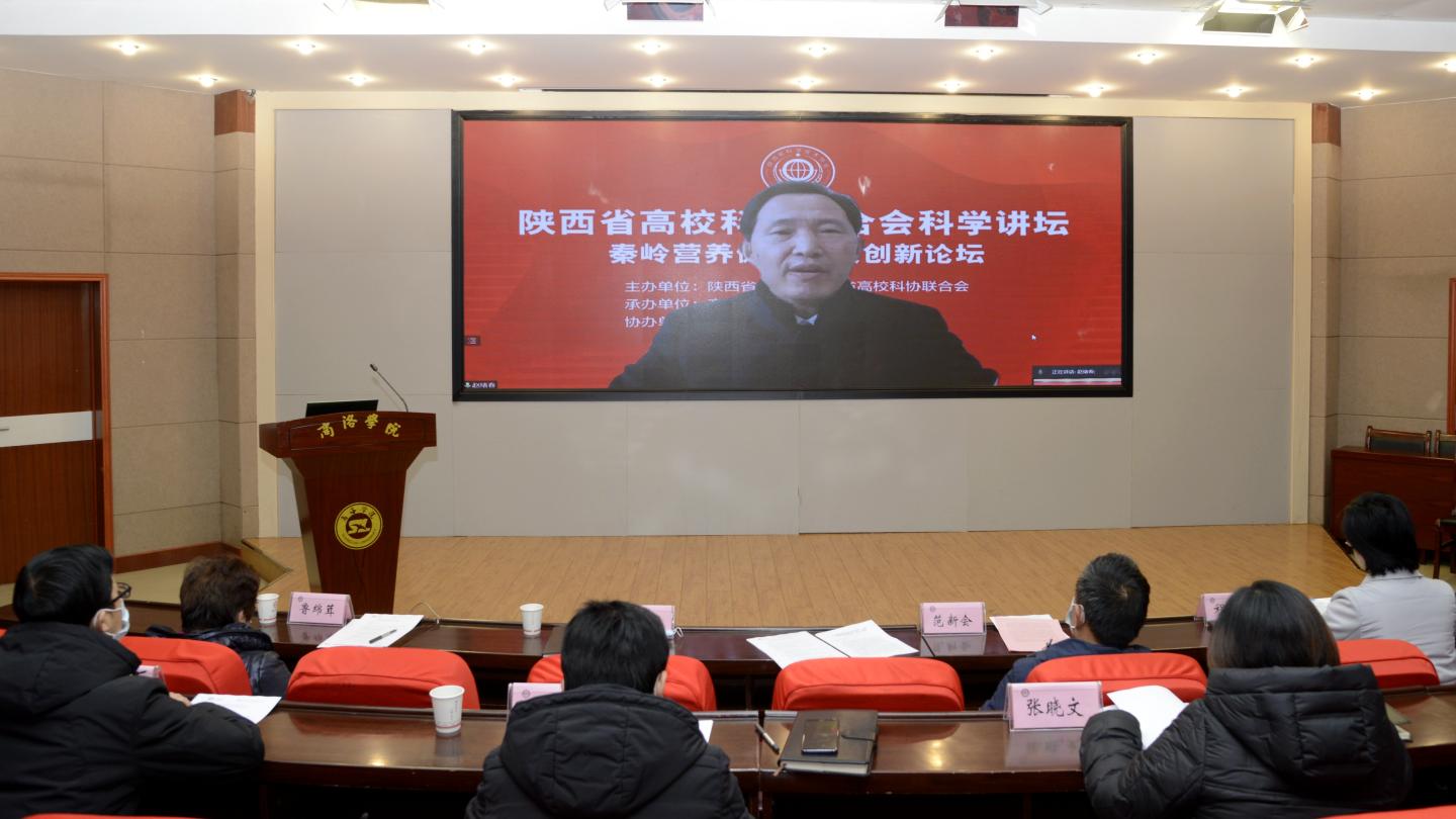 1月13日,我校以在線方式舉辦陜西省高??茀f(xié)聯(lián)合會科學講壇——秦嶺營養(yǎng)健康科技創(chuàng)新論壇,來自西北大學、西北農林科技大學、陜西師范大學、陜西科技大學、陜西理工大學、陜西學前師范學院、華中農業(yè)大學、江蘇師范大學、河南農業(yè)大學、安陽工學院、陜西省功能食品工程技術研究中心、廣東省農業(yè)科學院、湖北省農業(yè)科學院、商洛市食品安全檢驗檢測中心及陜西森弗天然制品有限公司、武漢當代農場生態(tài)農業(yè)有限公司等省內外高校、科研院所和企業(yè)的60余位專家學者相聚云端開展學術交流。校長范新會,商洛市科協(xié)主席董紅梅,商洛市科技局局長趙緒春出席開幕式并致辭。副校長王新軍主持開幕式。