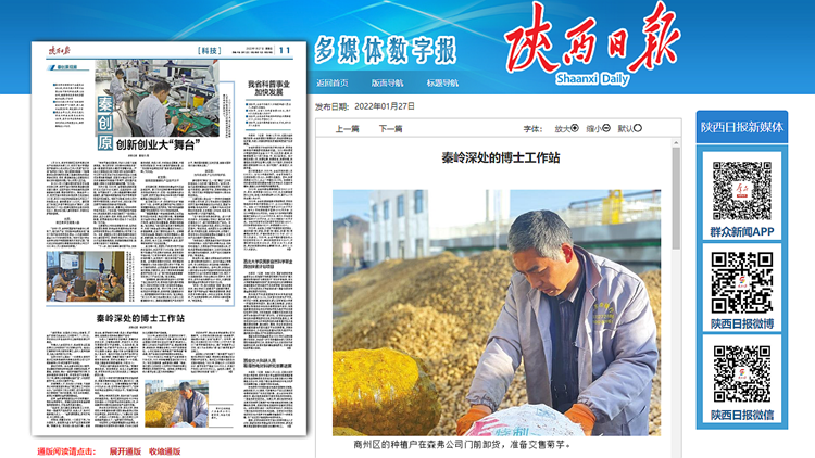 1月27日,《陜西日報(bào)》科技版以《秦嶺深處的博士工作站》為題,專題報(bào)道了我校與陜西森弗天然制品有限公司開展產(chǎn)學(xué)研合作,建立博士工作站,助力科技成果轉(zhuǎn)化,服務(wù)產(chǎn)業(yè)升級,帶動(dòng)地方發(fā)展和鄉(xiāng)村振興的工作成果。