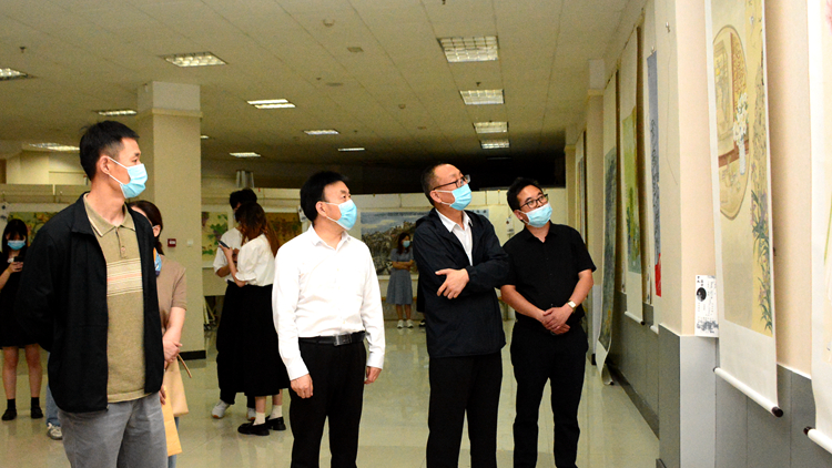 5月31日上午,校黨委書記張志昌,黨委副書記彭虎軍、劉勇,副校長劉寶盈前往圖書館藝術(shù)展廳參觀指導(dǎo)藝術(shù)學(xué)院美術(shù)學(xué)國畫方向2022屆畢業(yè)作品匯報展。黨委辦公室負責(zé)人、藝術(shù)學(xué)院黨政負責(zé)人和師生代表陪同參觀。
