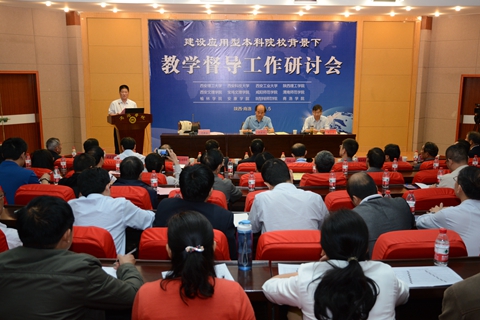 5月21日,由我校組織舉辦的“建設(shè)應(yīng)用型本科院校背景下教學(xué)督導(dǎo)工作研討會(huì)”在圖書館一樓報(bào)告廳召開。西安理工大學(xué)、西安科技大學(xué)、陜西理工學(xué)院、西安文理學(xué)院、寶雞文理學(xué)院等全省11所高校的教學(xué)督導(dǎo)專家齊聚我校,交流教學(xué)督導(dǎo)工作經(jīng)驗(yàn),探討在建設(shè)應(yīng)用型本科院校背景下督導(dǎo)工作對(duì)構(gòu)建、完善本科教學(xué)質(zhì)量保障體系和提升教學(xué)質(zhì)量的意義。校黨委書記、校長(zhǎng)劉建林出席研討會(huì)并致辭。西安科技大學(xué)副校長(zhǎng)韓江水出席研討會(huì)并作題為《審核評(píng)估與教學(xué)督導(dǎo)》的主題報(bào)告。研討會(huì)由校黨委副書記、副校長(zhǎng)范新會(huì)主持。