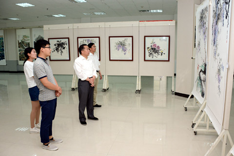 校領(lǐng)導(dǎo)觀看2016屆畢業(yè)生國畫作品展