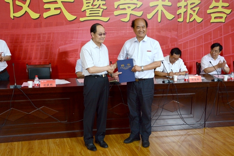 在熱烈的掌聲中,校黨委書記、校長(zhǎng)劉建林為張生勇院士頒發(fā)了聘書。