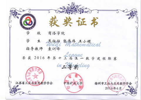 近日,由江蘇省工業(yè)與數(shù)學應用學會主辦的“第十三屆五一數(shù)學建模競賽”結(jié)果揭曉,我校電子信息與電氣工程學院物理學專業(yè)2014級焦壯壯、張偉偉和電子信息工程專業(yè)2015級王小蝶3位同學組成的數(shù)學建模參賽隊喜獲二等獎。這是我校首次組建代表隊參加此項賽事并獲佳績。
