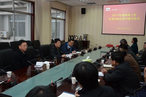 劉寶盈在講話中從經(jīng)費(fèi)到賬、平臺(tái)建設(shè)、項(xiàng)目成果、學(xué)術(shù)活動(dòng)等方面回顧總結(jié)了我校2016年科技工作情況。他指出,2017年要按照學(xué)校整體安排,在科研平臺(tái)、科研團(tuán)隊(duì)、研究生聯(lián)合培養(yǎng)、高水平科研立項(xiàng)、科研經(jīng)費(fèi)、重大科研成果和學(xué)術(shù)活動(dòng)等方面取得新的突破。簽訂年度科技工作專(zhuān)項(xiàng)任務(wù)書(shū)是科技工作考核的重要環(huán)節(jié),各二級(jí)教學(xué)部門(mén)要積極落實(shí)項(xiàng)目任務(wù),以科研經(jīng)費(fèi)為牽引,積極爭(zhēng)取重大科研項(xiàng)目的立項(xiàng)、完成及科技成果轉(zhuǎn)化,促進(jìn)我??萍脊ぷ魉皆偕闲屡_(tái)階。
