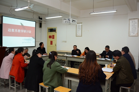 為了提高教師的教學(xué)水平,推進(jìn)教學(xué)改革,提升教學(xué)效果,人文學(xué)院政教系在總結(jié)2016年主題教研活動(dòng)的基礎(chǔ)上,組織開展了以“如何發(fā)揮學(xué)生的主體性”為主題的2017年教研活動(dòng)。今年的教研活動(dòng)自第一周開始,持續(xù)五周時(shí)間,政教系全體專兼職教師參加了教研活動(dòng)。