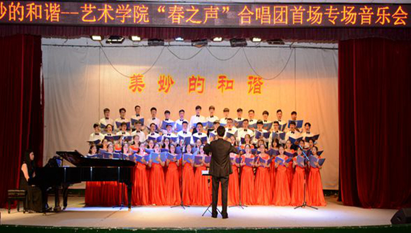 藝術(shù)學(xué)院“春之聲”合唱團(tuán)成立于2017年3月,團(tuán)員從音樂學(xué)專業(yè)大一、大二、大三年級學(xué)生中選拔產(chǎn)生,現(xiàn)有成員60人。合唱團(tuán)的成立,旨在促進(jìn)我校音樂學(xué)專業(yè)的建設(shè)與發(fā)展,推動(dòng)校園文化建設(shè),提高學(xué)生的音樂綜合素質(zhì)和藝術(shù)修養(yǎng)。
