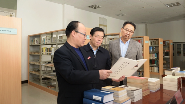 李穎科一行深入我校商洛文化暨賈平凹研究中心、商洛紅色文化資料館和學(xué)校藝術(shù)展廳等處,詳細(xì)了解了我校哲學(xué)社會(huì)科學(xué)工作開展情況。李穎科表示,商洛學(xué)院扎根商洛歷史文化、紅色文化土壤,培育了一批區(qū)域特色鮮明的人文社科品牌,希望商洛學(xué)院繼續(xù)深入挖掘商洛區(qū)域歷史文化資源,加大哲學(xué)社會(huì)科學(xué)研究投入,多出新成果、新亮點(diǎn)。省社科聯(lián)會(huì)積極支持學(xué)校哲學(xué)社會(huì)科學(xué)工作,在平臺(tái)建設(shè)、項(xiàng)目申報(bào)上給予政策和資金支持,共同為繁榮和發(fā)展哲學(xué)社會(huì)科學(xué)做出貢獻(xiàn)。