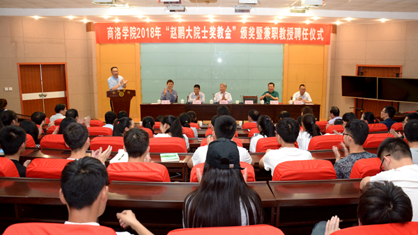 趙鵬大院士為獲得2018年“趙鵬大院士獎(jiǎng)教金”的三名教師元飛、喬成芳、曹寶月頒獎(jiǎng),并發(fā)表了情真意切的講話。他講到,他對(duì)商洛學(xué)院有著深厚的感情,每次到商洛學(xué)院都有回家的感覺。他對(duì)獲獎(jiǎng)教師表示祝賀,并指出,獲獎(jiǎng)教師為學(xué)校發(fā)展、相關(guān)學(xué)科發(fā)展、國家建設(shè)做出了貢獻(xiàn),在成才的道路上又邁進(jìn)了一大步,但除了他們?nèi)恢?,還有很多科研工作者奮戰(zhàn)在各自的領(lǐng)域,并取得了很多成就。他指出,我們目前在各學(xué)科的研究領(lǐng)域都取得了很多重大成果,但距離將我國建設(shè)成為世界科技強(qiáng)國這一目標(biāo)依然任重道遠(yuǎn),我們要堅(jiān)持創(chuàng)新,要將重大科技成果牢牢把握在自己手中,不僅要做一個(gè)“論文大國”,還要將自己的知識(shí)產(chǎn)業(yè)化,形成生產(chǎn)力,服務(wù)于社會(huì),服務(wù)于人民,要戒驕戒躁、再接再厲,做出彩事、做平凡人,為把我國建設(shè)成為科技強(qiáng)國而不懈奮斗,為學(xué)校發(fā)展和民族復(fù)興做出更大的貢獻(xiàn)。