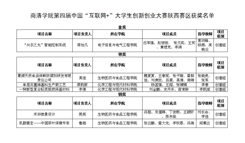 自2015年“互聯(lián)網(wǎng)+”大賽開(kāi)展以來(lái),我校把大賽作為應(yīng)用型人才培養(yǎng)的重要平臺(tái),積極開(kāi)展教學(xué)改革探索,把創(chuàng)新創(chuàng)業(yè)教育融入人才培養(yǎng),切實(shí)提高學(xué)生的創(chuàng)新精神、創(chuàng)業(yè)意識(shí)和創(chuàng)新創(chuàng)業(yè)能力。學(xué)校制定了《商洛學(xué)院學(xué)生創(chuàng)新創(chuàng)業(yè)教育實(shí)施方案》《商洛學(xué)院學(xué)生創(chuàng)新創(chuàng)業(yè)學(xué)分認(rèn)定辦法》,建立了由54名教師組成的校級(jí)創(chuàng)新創(chuàng)業(yè)教育專(zhuān)家?guī)?,建有校?jí)和院級(jí)眾創(chuàng)空間,培育、孵化創(chuàng)新創(chuàng)業(yè)項(xiàng)目,對(duì)先進(jìn)集體、優(yōu)勝團(tuán)隊(duì)及標(biāo)兵、優(yōu)秀指導(dǎo)教師等進(jìn)行表彰獎(jiǎng)勵(lì)。為做好本屆大賽各項(xiàng)工作,我校成立了以校長(zhǎng)為組長(zhǎng)的校賽組委會(huì),制定具體實(shí)施方案,鼓勵(lì)激勵(lì)廣大學(xué)生積極參加。針對(duì)288個(gè)參賽項(xiàng)目,學(xué)校聘請(qǐng)校外專(zhuān)家對(duì)項(xiàng)目負(fù)責(zé)人及指導(dǎo)教師進(jìn)行了多輪培訓(xùn),對(duì)項(xiàng)目精心打磨。經(jīng)過(guò)二級(jí)學(xué)院院內(nèi)賽和校內(nèi)預(yù)賽、初賽、決賽,評(píng)選出校級(jí)金獎(jiǎng)10項(xiàng)、銀獎(jiǎng)20項(xiàng)、銅獎(jiǎng)30項(xiàng)。在暑假期間,教務(wù)處組織校級(jí)10項(xiàng)金獎(jiǎng)項(xiàng)目負(fù)責(zé)人和指導(dǎo)教師進(jìn)行封閉訓(xùn)練,遴選9個(gè)項(xiàng)目代表學(xué)校參加陜西省復(fù)賽,最終6項(xiàng)獲獎(jiǎng)。