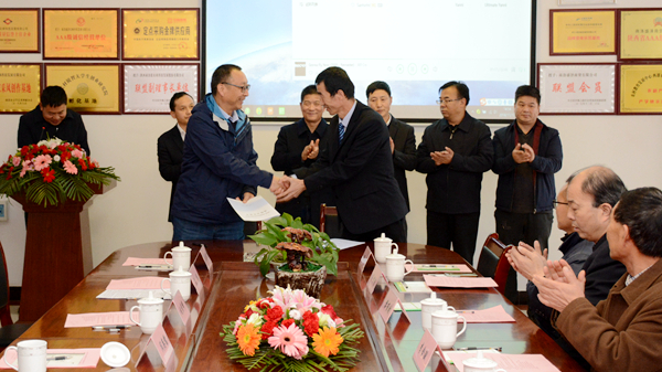 范新會、冀博為我校與商洛藍公司共建的“商洛市食用菌研發(fā)中心”揭牌。我校還在商洛藍公司建立了“商洛學院博士工作站”“商洛學院教學實驗實踐基地”,這標志著商州區(qū)第一家食用菌研發(fā)中心和博士工作站成立。范新會、劉寶盈代表學校授牌,賈小衛(wèi)、張向平分別代表公司接牌。