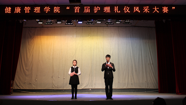 為了提高護理專業(yè)學生的禮儀修養(yǎng),提升護理專業(yè)學生的整體形象,展示護理專業(yè)學生良好的精神風貌和職業(yè)風范,12月12日晚,健康管理學院在大學生活動中心舉辦首屆護理禮儀風采大賽。健康管理學院黨政負責人,教務處、商洛國際醫(yī)學中心醫(yī)院、陜西森弗天然制品有限公司、商洛市中醫(yī)醫(yī)院相關負責人以及全體護理專業(yè)師生觀看了比賽。