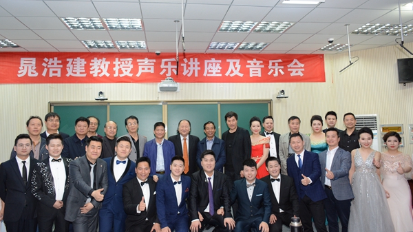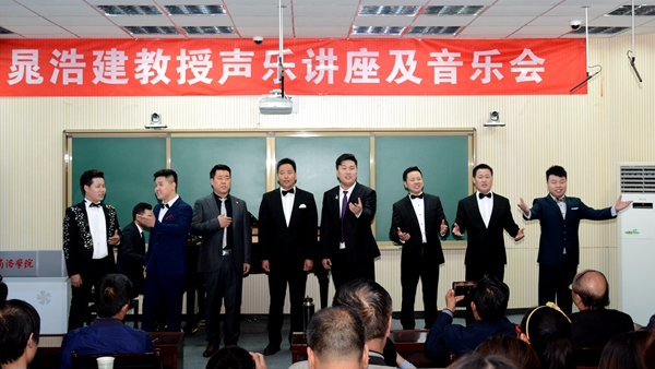 在17日上午的專題講座中,晁浩建教授從呼吸中的“呼”、聲音入腔、中低音的開(kāi)放式歌唱和如何解決高音四個(gè)方面對(duì)聲樂(lè)演唱進(jìn)行了通俗易懂的講解,并現(xiàn)場(chǎng)示范訓(xùn)練方法。18日,晁浩建教授公開(kāi)課在我校如期舉行。課堂上,晁浩建現(xiàn)場(chǎng)指導(dǎo)藝術(shù)學(xué)院師生進(jìn)行發(fā)聲練習(xí),并為師生講解歌曲,用生動(dòng)幽默的語(yǔ)言向師生講授科學(xué)演唱以及處理音樂(lè)作品的技巧和方法,以嚴(yán)謹(jǐn)務(wù)實(shí)的教學(xué)態(tài)度和精湛嫻熟的專業(yè)水平打動(dòng)了在場(chǎng)的所有師生。