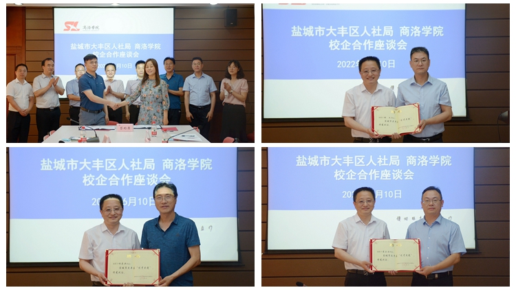會(huì)上,張強(qiáng)為“鹽城市大豐區(qū)商洛學(xué)院引才工作站”授牌,并為楊存典、蔣正治和學(xué)生處副處長(zhǎng)張文頒發(fā)了鹽城市大豐區(qū)“引才大使”聘書。楊存典與張強(qiáng)分別代表學(xué)校和大豐區(qū)簽署校地合作協(xié)議。馬克思主義學(xué)院黨總支書記劉麥霞與企業(yè)代表簽署校企合作協(xié)議。