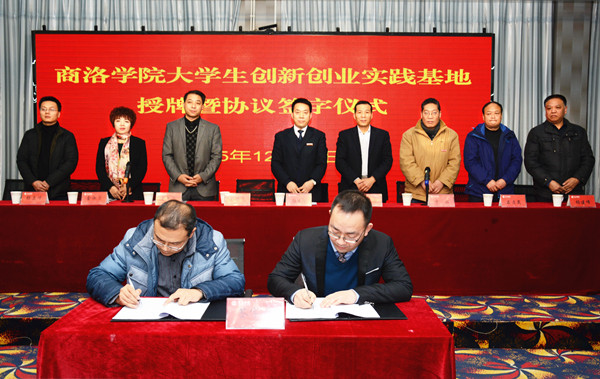 12月24日下午,我校與陜西森弗天然制品有限公司在商州電子商務(wù)產(chǎn)業(yè)孵化基地簽署《校企合作共建大學(xué)生創(chuàng)新創(chuàng)業(yè)實(shí)踐基地協(xié)議》。校黨委副書記彭虎軍與森弗公司董事長金新康共同為大學(xué)生創(chuàng)新創(chuàng)業(yè)實(shí)踐基地揭牌。簽字授牌儀式由教務(wù)處處長李超主持。
