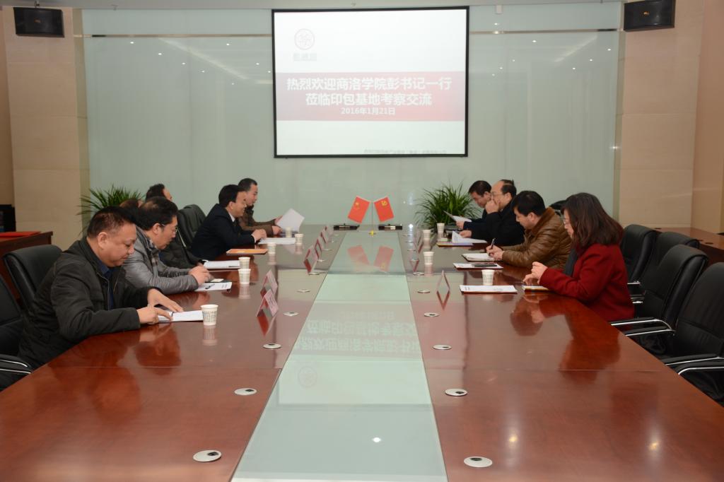 袁學(xué)武向我校參會(huì)人員詳細(xì)介紹了西安印刷包裝產(chǎn)業(yè)集團(tuán)的發(fā)展歷程、企業(yè)規(guī)模以及發(fā)展前景,他表示自己與商洛學(xué)院有很深的機(jī)緣,樂(lè)見(jiàn)商洛學(xué)院與西安印刷包裝產(chǎn)業(yè)集團(tuán)達(dá)成戰(zhàn)略合作協(xié)議,為校企合作、共謀發(fā)展搭建良好的平臺(tái)。