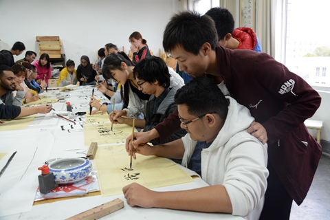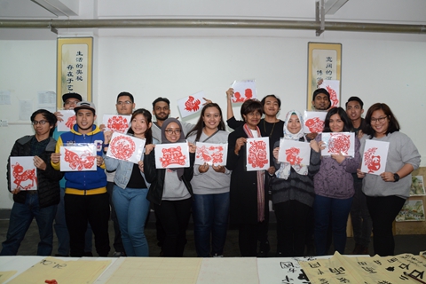 馬來西亞吉隆坡建設(shè)大學師生還參加了我??萍嘉幕囆g(shù)節(jié)開幕式,共同觀看航模表演,并聽取了我校創(chuàng)建一流應(yīng)用型本科院校系列學術(shù)報告。交流團學生還在我校教師的指導下學習剪紙和中國書法,表現(xiàn)出了濃厚的興趣,并通過學習,完成了自己的作品,寫出了“我愛中國”、“我愛商洛學院”等書法作品。