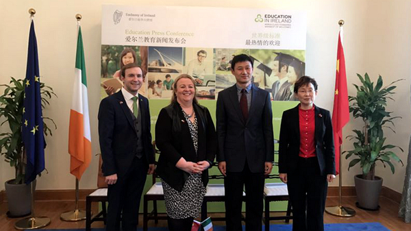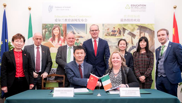 3月15日,愛爾蘭高等教育新聞發(fā)布會(huì)在愛爾蘭大使館舉行,愛爾蘭高校與多所中國(guó)高校簽署高等教育合作備忘錄。愛爾蘭副總理兼外交部與貿(mào)易部部長(zhǎng)西蒙·科文尼、愛爾蘭駐華大使李修文、中國(guó)教育國(guó)際交流協(xié)會(huì)副秘書長(zhǎng)沈雪松、副校長(zhǎng)劉勇以及合作高校領(lǐng)導(dǎo)出席發(fā)布會(huì)。劉勇代表學(xué)校與愛爾蘭高威梅奧理工學(xué)院副校長(zhǎng)凱特·努恩簽署了合作備忘錄,這是我校首次與愛爾蘭高校簽訂合作協(xié)議。