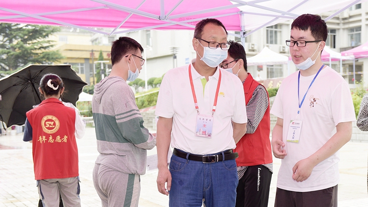 考試當日,副校長劉寶盈和商洛市招辦副主任尚軍田在我校教務處負責人的陪同下,深入身份核驗區(qū)、體溫檢測區(qū)、候考區(qū)、引導區(qū)、考務工作辦公室等各個工作點檢查指導考試工作,每到一處都詳細詢問檢查,叮囑各崗位工作人員精心做好各項考務工作,并對堅守考務一線的工作人員和學生志愿者進行了慰問。