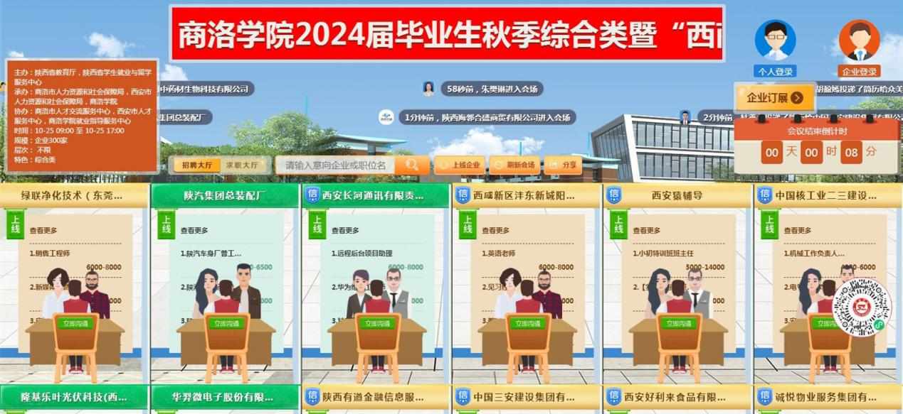 為切實做好我校2024屆畢業(yè)生就業(yè)工作,促進(jìn)畢業(yè)生更加充分、更高質(zhì)量就業(yè),10月25日,由陜西省教育廳,陜西省學(xué)生就業(yè)與留學(xué)服務(wù)中心指導(dǎo),西安市人社局、商洛市人社局和我校聯(lián)合主辦,商洛市人才中心、西安市人才中心和我校就業(yè)中心承辦的2024屆畢業(yè)生秋季綜合類暨“西商融合發(fā)展”專場網(wǎng)絡(luò)視頻招聘會依托貓頭英云人才市場順利舉辦。