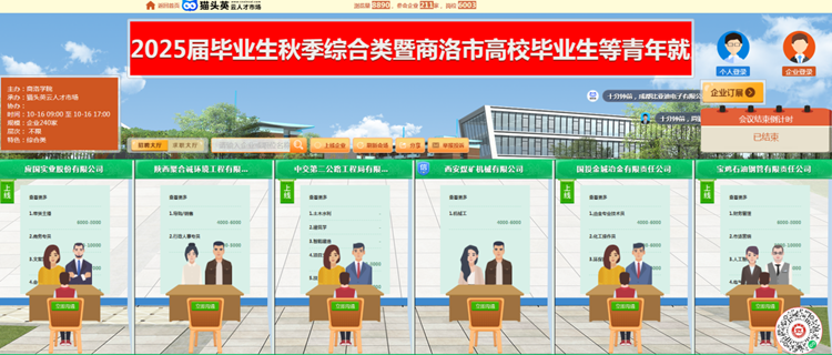 10月16日,由省教育廳指導、省就業(yè)留學中心支持,我校和商洛市人社局聯(lián)合主辦,我校就業(yè)中心和商洛市人才中心承辦的2025屆畢業(yè)生秋季綜合類暨商洛市高校畢業(yè)生等青年就業(yè)服務攻堅行動專場網絡視頻招聘會依托貓頭英云人才市場順利舉辦。