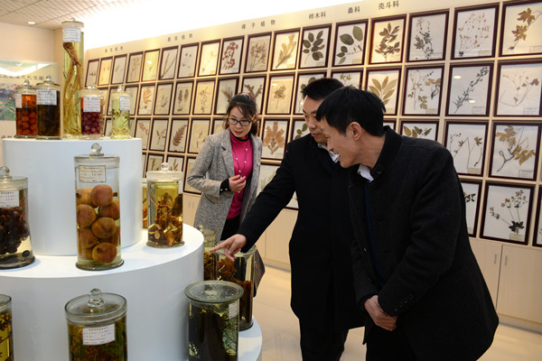 在彭虎軍的陪同下,陳義德、朱先鵬、周麗娜一行參觀了我校商洛紅色文化資料館、商洛文化暨賈平凹研究中心、陜西省尾礦資源綜合利用重點實驗室、學校辦學成就展廳、秦嶺植物標本室及生物醫(yī)藥與食品工程學院實驗室等處。