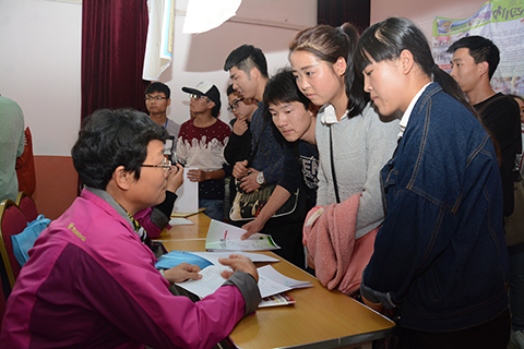 畢業(yè)生在各單位展位前認真閱讀招聘簡章,了解新疆的社會經濟現(xiàn)狀和發(fā)展前景,仔細詢問招聘崗位要求、待遇及職業(yè)發(fā)展前景,向有意向單位投遞簡歷并作自我介紹。用人單位代表耐心地為畢業(yè)生熱情介紹情況,解答咨詢問題,嚴格審查自薦材料,并進行現(xiàn)場考核面試。