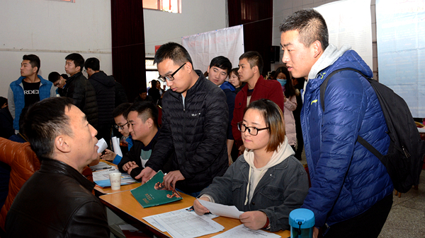 為促進(jìn)2018屆畢業(yè)生就業(yè)數(shù)量和質(zhì)量的雙提升,11月25日,我校舉辦2017年冬季新疆生產(chǎn)建設(shè)兵團(tuán)校園專場招聘會。我校及商洛職業(yè)技術(shù)學(xué)院等多所省內(nèi)外高校畢業(yè)生前來應(yīng)聘。校黨委副書記彭虎軍現(xiàn)場指導(dǎo)招聘工作。各二級學(xué)院黨總支負(fù)責(zé)人、相關(guān)職能部門負(fù)責(zé)人及畢業(yè)班輔導(dǎo)員全程參與招聘會的服務(wù)工作。
