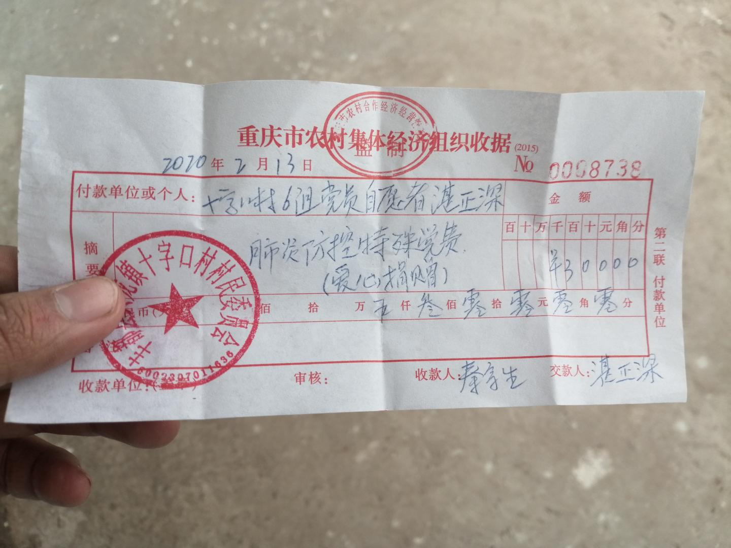疫情暴發(fā)時,湛正深同學正在重慶市豐都縣興龍鎮(zhèn)十字口村的老家,對疫情的關(guān)注格外用心的他,在得知村黨委需要志愿者后,第一時間到所在十字口村村黨委報到請戰(zhàn),主動提交請戰(zhàn)書。他在請戰(zhàn)書中寫到:作為一名學生黨員,我時刻牢記著隨時準備為黨和人民犧牲一切的入黨誓詞,在疫情防控關(guān)鍵的時刻,希望能夠參與到疫情防疫第一線,為防范疫情出一份力。同時,湛正深還將自己兼職賺取的三百元現(xiàn)金作為特殊黨費上交組織以做疫情防控之用。經(jīng)過當?shù)攸h委的批準,湛正深同學加入“抗疫”工作小組,在做好自身安全防護的前提下,迅速投身防控一線。