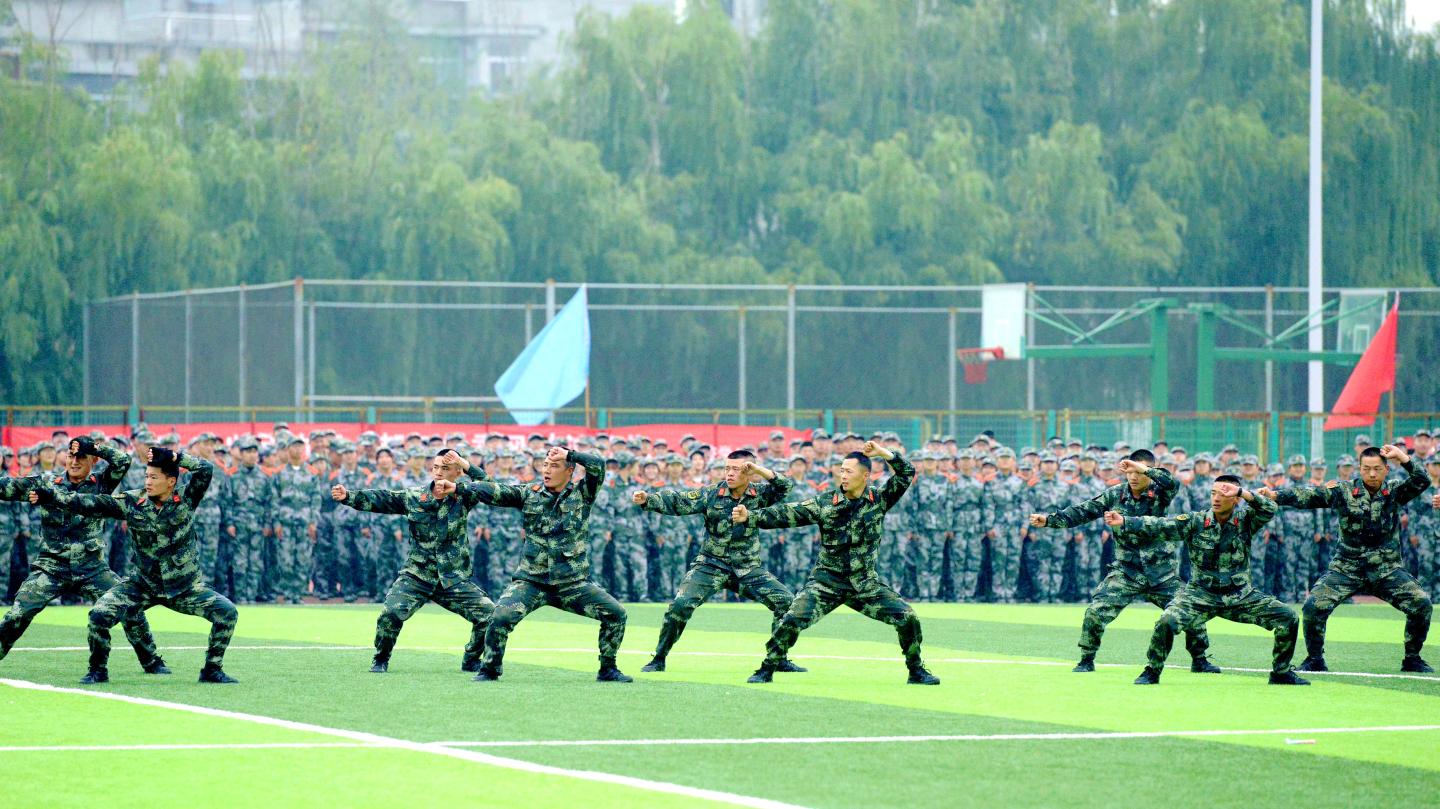 分列式結(jié)束后,軍訓(xùn)教官和學(xué)生進(jìn)行了匕首操、花樣隊(duì)列、五步拳、擒敵術(shù)、反恐演練等匯報(bào)表演。女兵們表演的匕首操干凈利落、整齊劃一,將“巾幗不讓須眉”之勢展現(xiàn)的淋漓盡致;花樣隊(duì)列表演中同學(xué)們擺出“商院2020”“不忘初心、牢記使命”等字樣,展現(xiàn)了商院學(xué)子勇?lián)鷷r(shí)代使命的志向決心;五步拳表演套路連貫、氣勢如虹,拳腳虎虎生威,擒敵術(shù)表演配合默契、果敢勇猛,盡顯軍人本色;反恐演練與戰(zhàn)地救護(hù),模擬展示了多種反恐戰(zhàn)術(shù)隊(duì)形、戰(zhàn)術(shù)手語、戰(zhàn)術(shù)基本持槍動作以及相對應(yīng)的實(shí)戰(zhàn)技能,將現(xiàn)場氣氛推向高潮,引得師生陣陣掌聲。