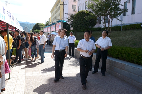 在黨政辦公室、學(xué)生處、招生就業(yè)處、保衛(wèi)處、后勤保障處等相關(guān)職能部門(mén)負(fù)責(zé)人的陪同下,范新會(huì)一行深入新生接待處、繳費(fèi)處、戶籍辦理處、軍訓(xùn)服裝發(fā)放處、學(xué)生公寓、銀行卡與通信卡辦理處等場(chǎng)點(diǎn),詳細(xì)檢查了各個(gè)場(chǎng)點(diǎn)迎新工作部署與開(kāi)展情況。經(jīng)過(guò)檢查,校領(lǐng)導(dǎo)對(duì)接待新生的各項(xiàng)準(zhǔn)備工作表示滿意,并要求各單位通力合作,積極主動(dòng)、熱情周到、扎實(shí)細(xì)致做好服務(wù)工作,讓新生及家長(zhǎng)能迅速、便捷、舒心地辦理入校手續(xù),感受到學(xué)校大家庭的溫暖。針對(duì)迎新期間校內(nèi)交通調(diào)度、衛(wèi)生清理、志愿者培訓(xùn)等工作,校領(lǐng)導(dǎo)也提出了具體要求。