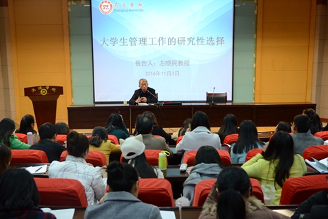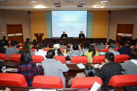 為進(jìn)一步提高我校輔導(dǎo)員職業(yè)能力,提升輔導(dǎo)員專業(yè)化、職業(yè)化水平,11月3日,學(xué)工部召開(kāi)了輔導(dǎo)員專題培訓(xùn)會(huì),邀請(qǐng)我校教學(xué)督導(dǎo)組組長(zhǎng)左曉民教授為輔導(dǎo)員們做了題為《大學(xué)生管理工作的研究性選擇》的專題報(bào)告。我校全體輔導(dǎo)員和商洛職業(yè)技術(shù)學(xué)院輔導(dǎo)員聽(tīng)取了報(bào)告。報(bào)告會(huì)由學(xué)工部部長(zhǎng)石啟英主持。