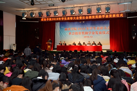 12月8日,我校隆重舉行2016年學(xué)生表彰大會(huì)暨社會(huì)捐資獎(jiǎng)助學(xué)金發(fā)放儀式。校黨委副書記、副校長(zhǎng)范新會(huì),副校長(zhǎng)魏書堂、黨委副書記彭虎軍,陜西省電力公司外聯(lián)部副主任李亞琳、商洛供電局黨委書記陳飛、中國(guó)聯(lián)通商洛分公司總經(jīng)理古濤、商洛市郵政分公司副總經(jīng)理張勛、中國(guó)電信商洛分公司副總經(jīng)理胡萬(wàn)社,陜西森弗天然制品有限公司董事長(zhǎng)、總經(jīng)理金新康等出席大會(huì)。大會(huì)由彭虎軍主持。