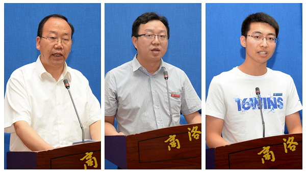 先進(jìn)集體代表、生物學(xué)院黨總支書記丁爭尚教授,教師代表、電信學(xué)院袁訓(xùn)鋒博士,學(xué)生代表、經(jīng)管學(xué)院信管1402班賈祥同學(xué)作了發(fā)言。