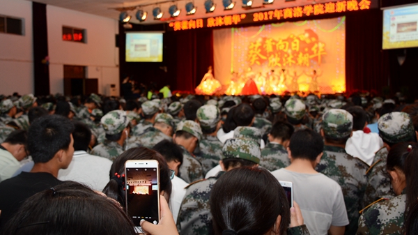 9月19日晚,以”葵藿向日、欣沐朝華”為主題的2017年迎新晚會(huì)在大學(xué)生活動(dòng)中心隆重上演。校領(lǐng)導(dǎo)龍治剛、范新會(huì)、魏書(shū)堂、劉寶盈、劉勇同師生一同觀(guān)看了晚會(huì)。晚會(huì)由校團(tuán)委、學(xué)工部主辦。