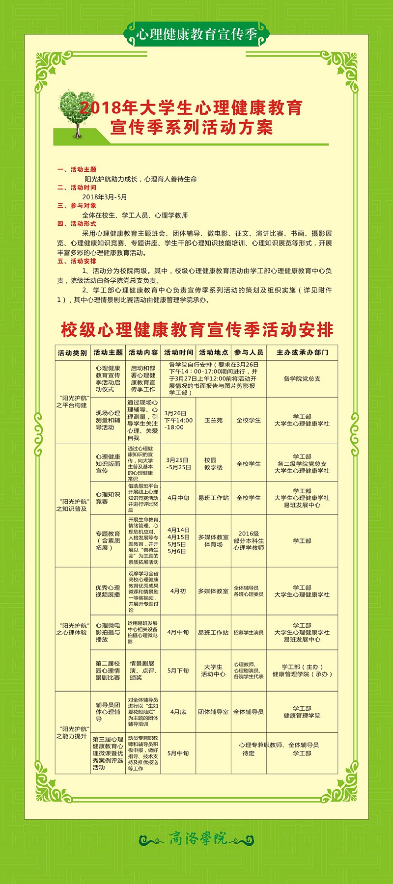 為積極響應(yīng)省委高教工委《關(guān)于開(kāi)展陜西高校第三屆“陽(yáng)光護(hù)航”心理育人宣傳季活動(dòng)的通知》要求,進(jìn)一步豐富我校大學(xué)生精神文化生活,提升大學(xué)生心理素質(zhì),我校策劃開(kāi)展了一系列心理健康教育活動(dòng)。