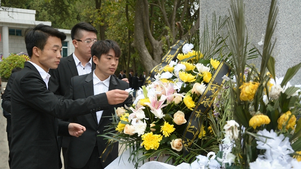 校團委副書記許薇在現(xiàn)場為大家上了一堂以“做奮斗中的有志青年”為主題的團課,號召青年學子以革命先烈為榜樣,堅定理想信念,練就過硬本領,矢志艱苦奮斗,錘煉高尚品格,為中華民族的偉大復興貢獻青春力量。學生代表劉云鵬發(fā)言并表示,革命先輩們?yōu)榻ㄔO社會主義新中國前赴后繼,拋頭顱,灑熱血,作為新時代的大學生,更要牢記使命,努力學習,勤奮進取,勇挑時代重任,做社會主義事業(yè)的合格建設者和可靠接班人。