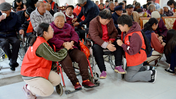 為傳承中華民族尊老愛老的傳統(tǒng)美德,弘揚(yáng)“奉獻(xiàn)、友愛、互助、進(jìn)步”的志愿精神,10月14日,在重陽節(jié)即將來臨之際,校團(tuán)委和商洛市慈善協(xié)會組織我校青年志愿者協(xié)會、馬克思主義學(xué)院志愿服務(wù)隊(duì)百余名志愿者赴百順山莊老年公寓開展“九九重陽節(jié) 濃濃敬老情”志愿服務(wù)活動。志愿者們幾人一組,攙扶老人下樓散心,幫他們推輪椅,陪他們聊天、講笑話、唱歌,為他們包餃子,叮囑他們照顧好身體,并貼心送上暖手寶,讓他們感受到更多來自社會和青年人的溫暖與關(guān)懷。志愿者們還精心準(zhǔn)備了《雙截棍》《拍拍操》《漢服舞》《映山紅》等文藝表演,為老人們帶去歡笑與快樂。公寓的老人們也動情地演唱了紅歌,幸福之情溢于言表。溫暖人心的志愿活動展現(xiàn)了我校學(xué)子尊老愛老的道德品質(zhì),增強(qiáng)了新時代青年人孝老愛親的內(nèi)在自覺,堅(jiān)定了青年志愿者們持之以恒尊老助老的信念決心。