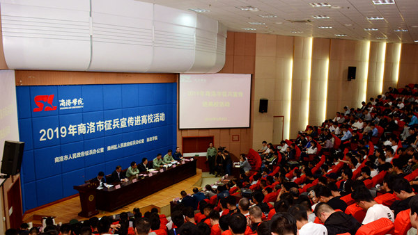 5月9日,2019年商洛市征兵宣傳進高?;顒釉谖倚Ee行。校黨委副書記彭虎軍,商洛軍分區(qū)副司令員李水龍大校、動員處處長周武強,商州區(qū)人民武裝部部長曹建明上校出席活動。商洛市、商州區(qū)人民政府征兵辦公室及市退役軍人事務局有關(guān)領(lǐng)導,我校學生處負責人,各學院黨總支書記、學工辦主任,全體輔導員、學生代表約500人參加了活動?;顒佑芍芪鋸娭鞒帧?/p>