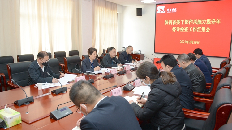 3月29日,陜西省委干部作風能力提升年第三督導檢查組組長、省委組織部二級巡視員郭春俠帶隊蒞臨我校,對落實省委干部作風能力提升年工作推進情況進行專項督導檢查。學校黨委干部作風能力提升年工作專班主任、黨委書記張志昌主持座談匯報會。專班副主任、黨委副書記彭虎軍出席匯報會。黨委辦公室·院長辦公室、組織部、紀委、宣傳部相關負責人參加會議。