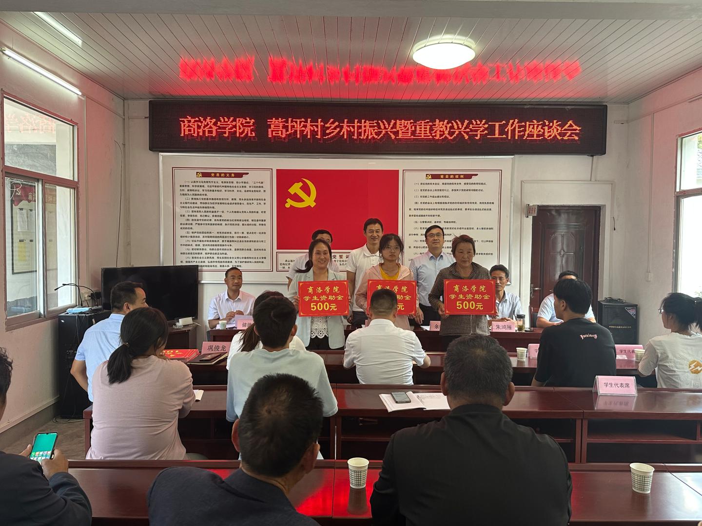 座談會上,劉勇代表學(xué)校為蒿坪村2023年錄取大學(xué)生和高中生發(fā)放助學(xué)金。他對受資助學(xué)生考入各自理想的學(xué)校表示祝賀,并希望學(xué)生們一是要心懷夢想,明晰目標(biāo),通過不斷學(xué)習(xí),讓夢想照進現(xiàn)實,用知識實現(xiàn)夢想;二是要持之以恒,鍥而不舍,不斷積累,人生終將有所成就。校地雙方還就鄉(xiāng)村振興、產(chǎn)業(yè)發(fā)展等事項進行了深入座談交流。